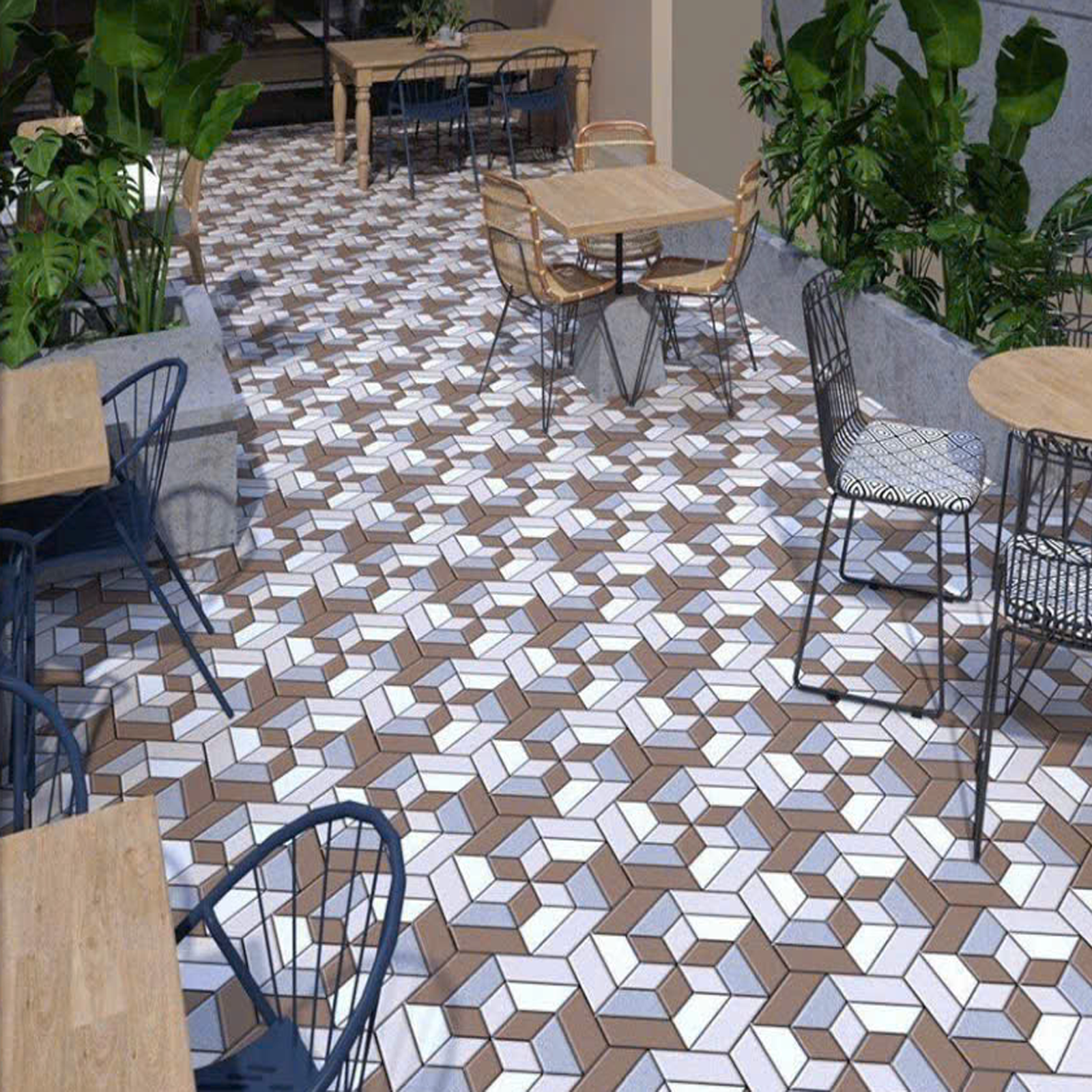 Gạch lát nền sân vườn hoa văn lục giác KT-HMZM