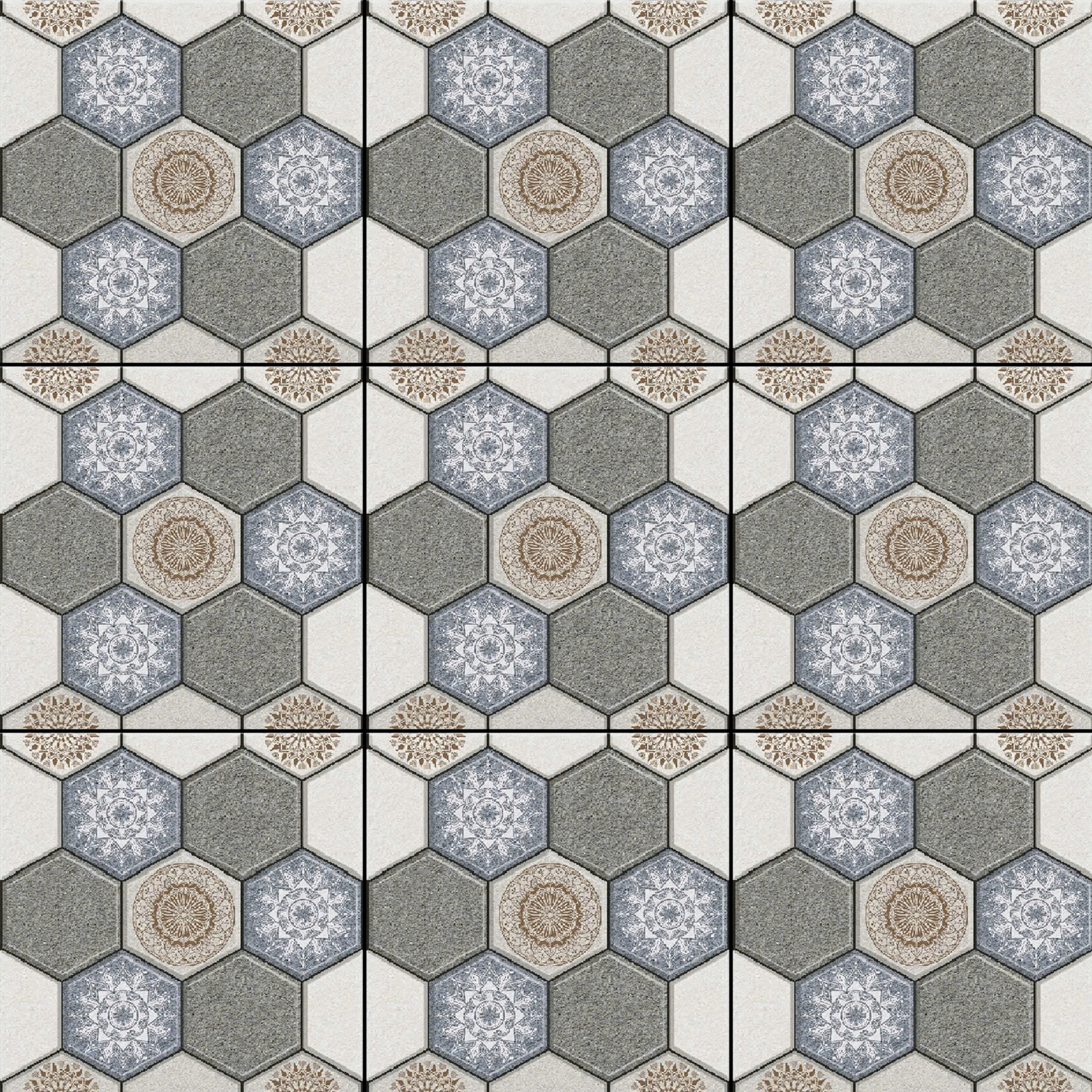 Gạch lát nền sân vườn men mờ hoa văn xám GHCM-MZZH - 50x50