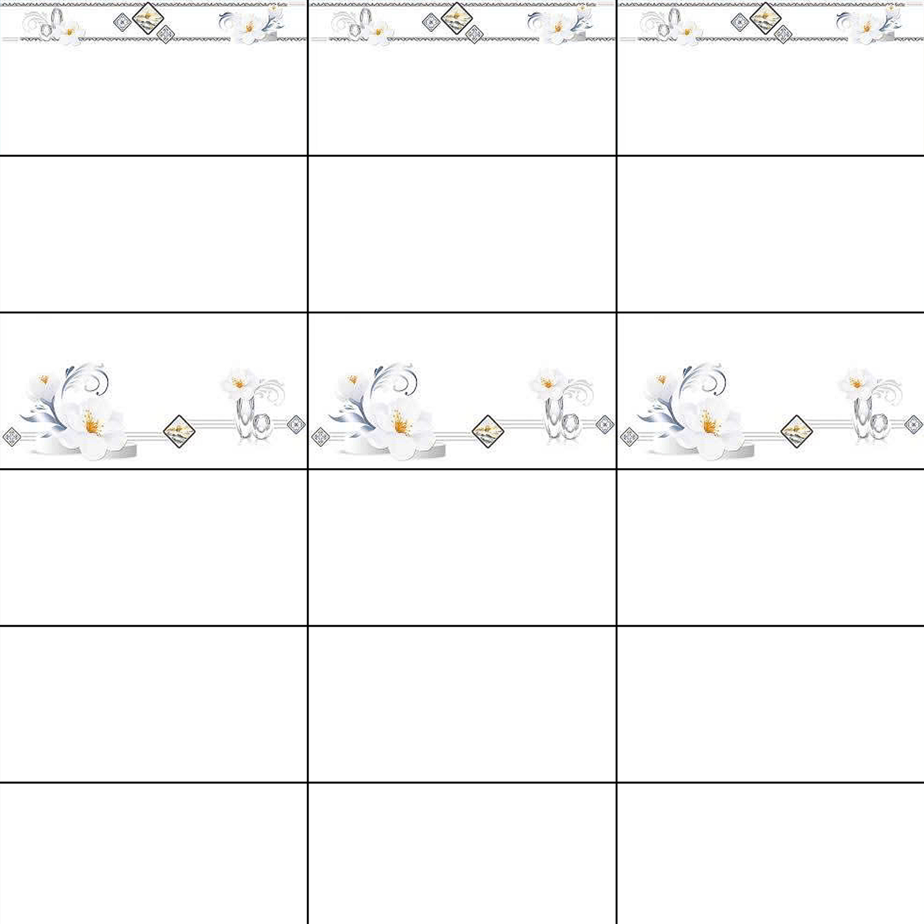 Gạch ốp men bóng trắng trơn viền hoa văn điểm bình hoa TK-HVMM - 40x80